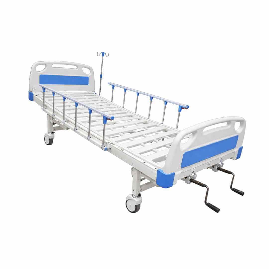 This 2-crank manual hospital bed with mattress is designed for reliable everyday use in hospitals, clinics, nursing homes, and home care settings in Kenya. With dual crank control, it supports comfortable patient positioning through backrest adjustment, thigh rest elevation, and auto-contour support, helping improve comfort during recovery, feeding, and long-stay care.